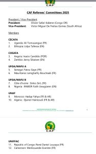Ci dessous la liste de la composition de la commission des arbitres CAF: