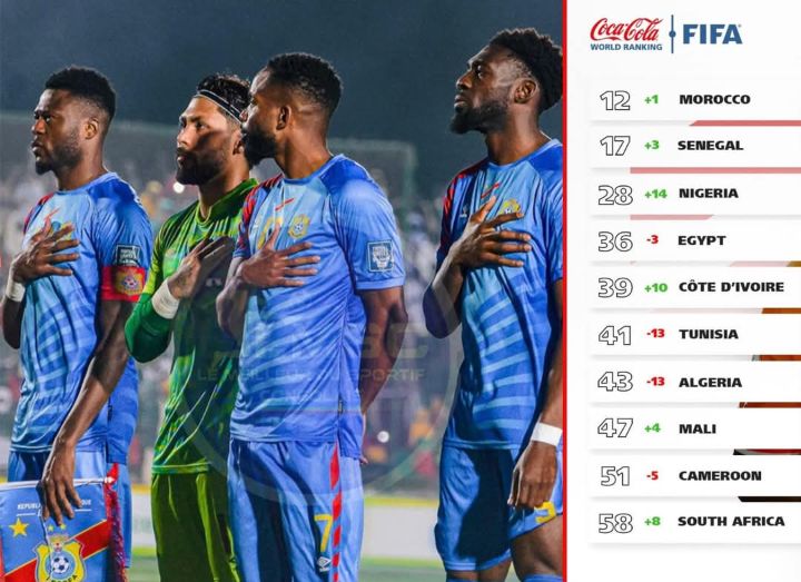 Malgré une trêve internationale tonitruante ponctuée par 2 victoires contre le sud soudan 1-0,et 2-0 contre la Mauritanie en marge de la 5e et 6e journée des éliminatoires du mondial 2026,la RDC fait du surplace sur l’échiquier continental et mondial ,elle reste à la 𝟔𝟏𝐞 𝐩𝐥𝐚𝐜𝐞 au monde 𝐚𝐯𝐞𝐜 𝟏𝟒𝟎𝟔.𝟓𝟗 et 11eme en Afrique.