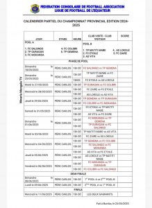 Il sied de noter que ce championnat provincial ira du 18 mai au 11 juin 2025,toutes les rencontres se joueront au stade père Carlos de BUMBA.
